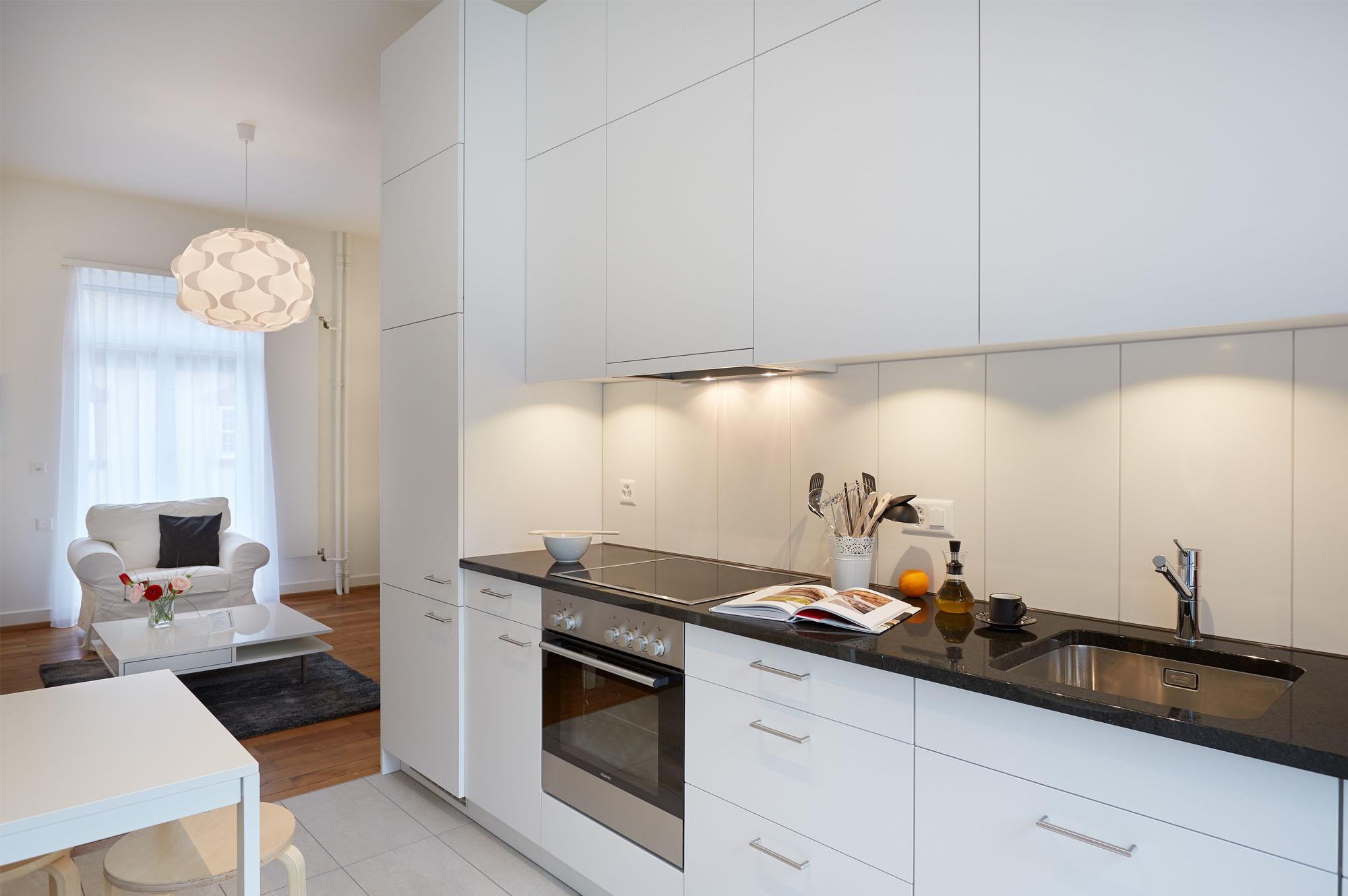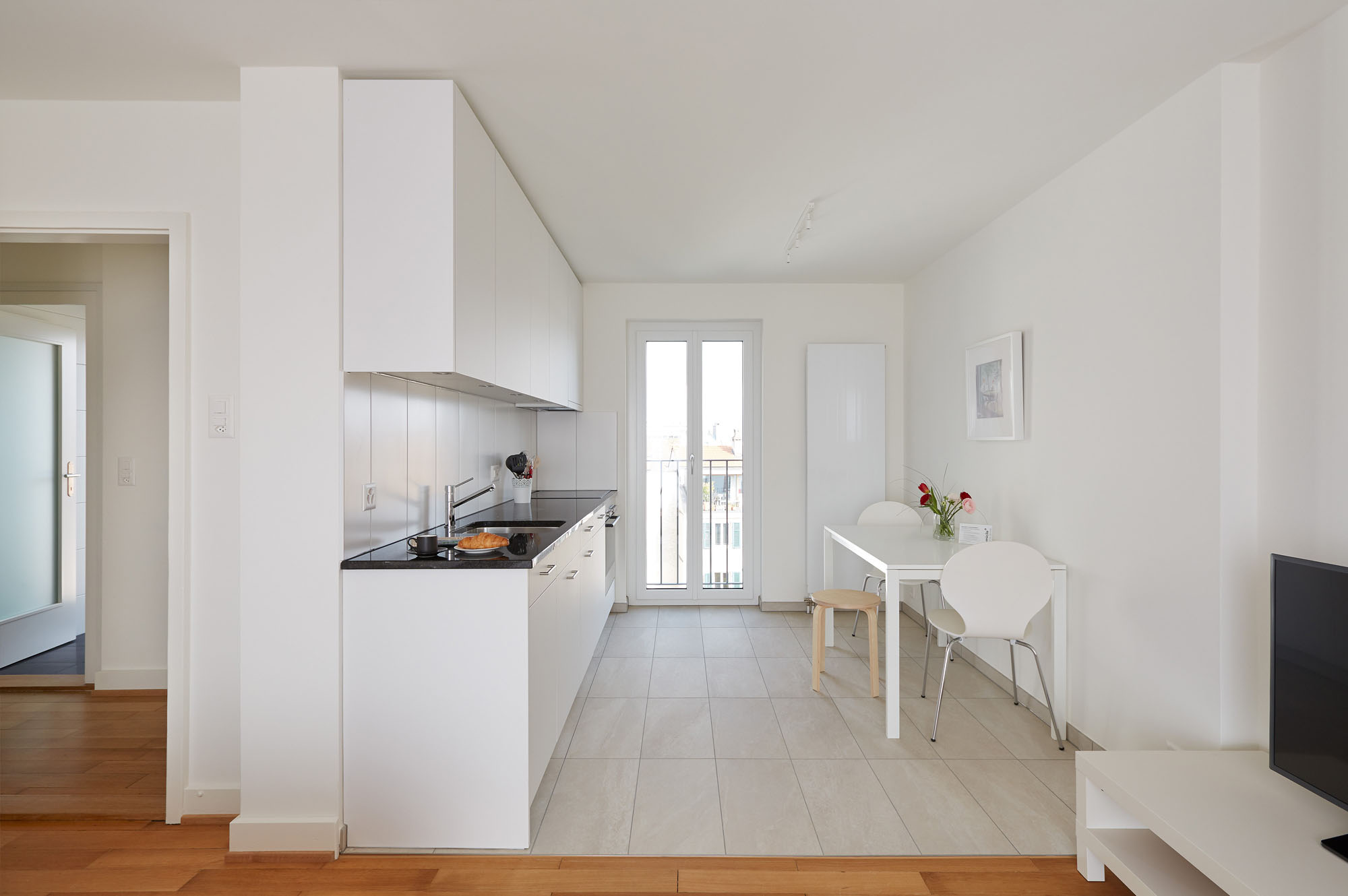 The flat layouts have now been adapted as part of a complete refurbishment with new kitchens and bathrooms. The existing surfaces were refreshed. A total of 18 smaller residential units were created in the form of rental flats and furnished flats.