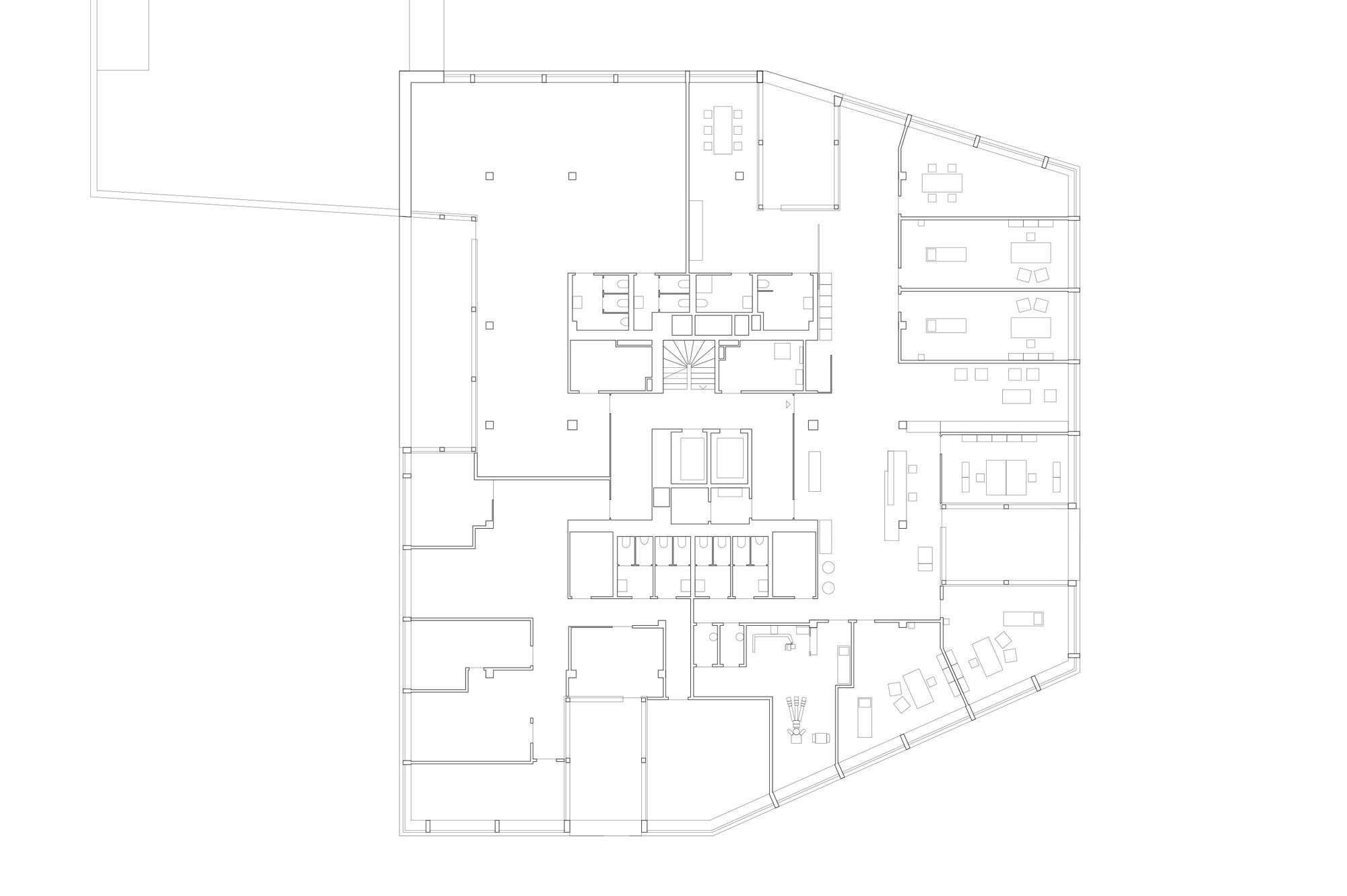 The adjustments to the floor plan structure were made through the additional installation of lightweight walls and glass partitions. The façade and load-bearing components remained unchanged.