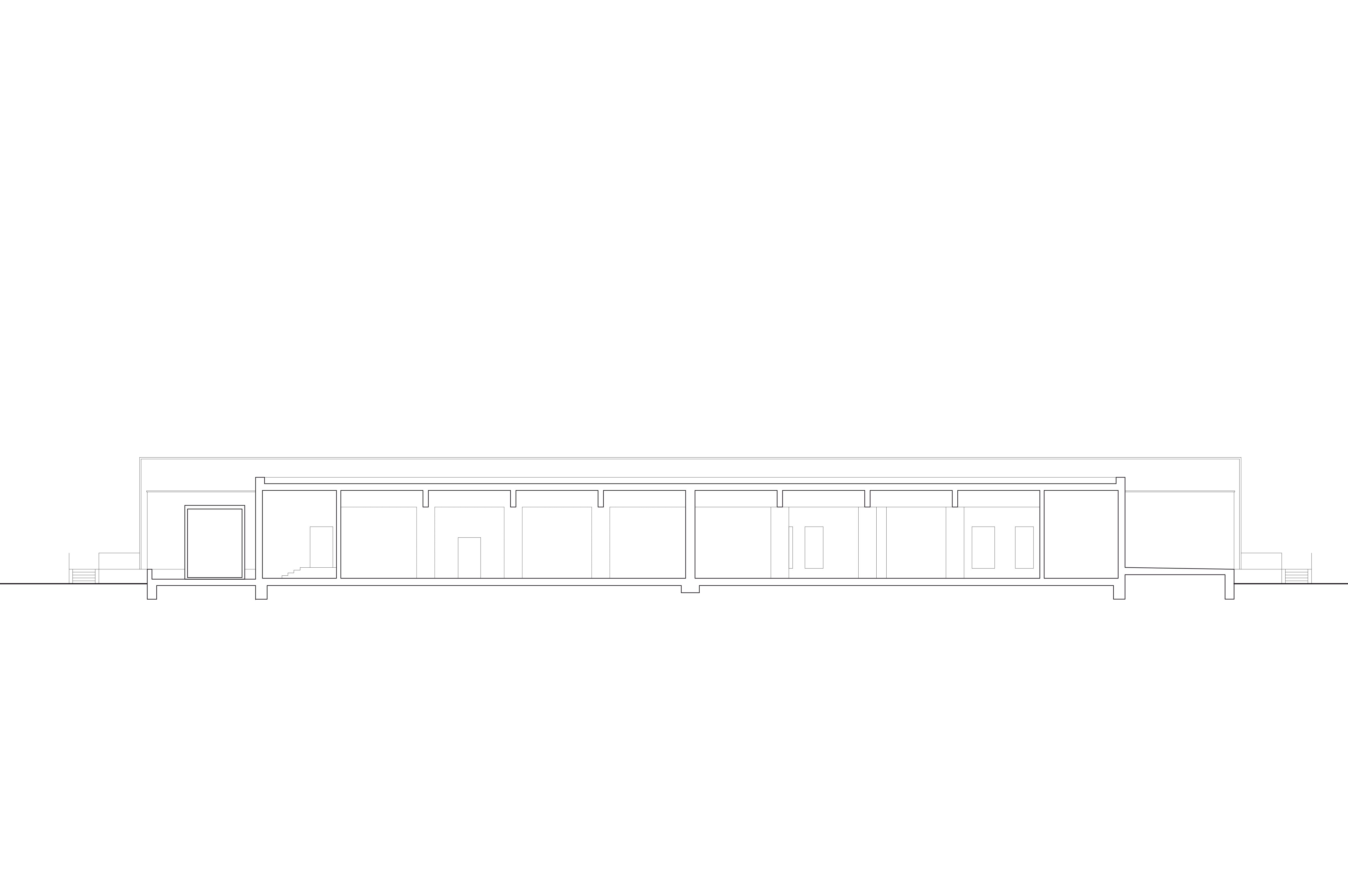 Die aus einem gestrichenen Wärmedämmverbundsystem bestehende Gebäudehülle wird zusammen mit den technischen Aussenräumen durch eine anthrazitfarbene Membranfassade umspannt und optisch zu einem Baukörper zusammengefasst.